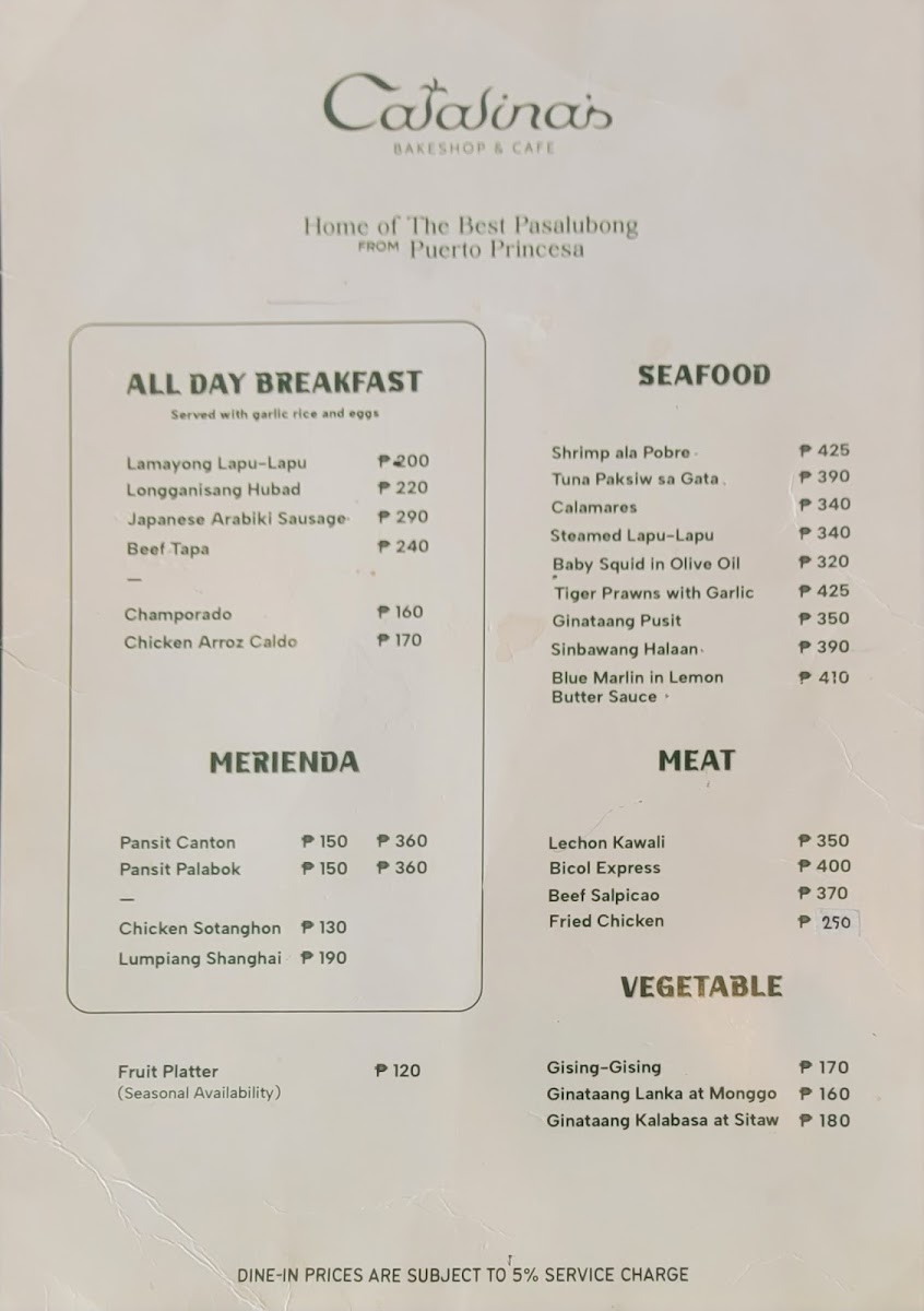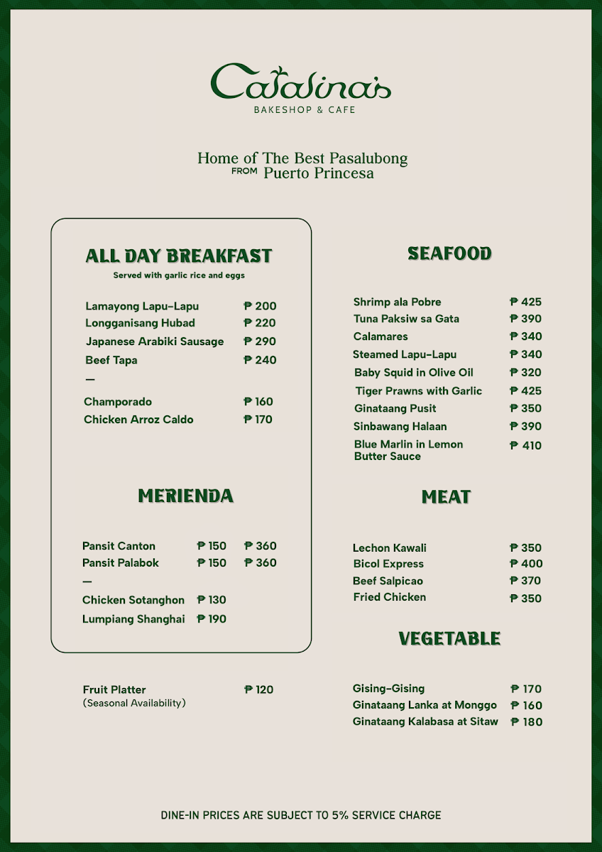 Catalina’s Bakeshop & Cafe Menu